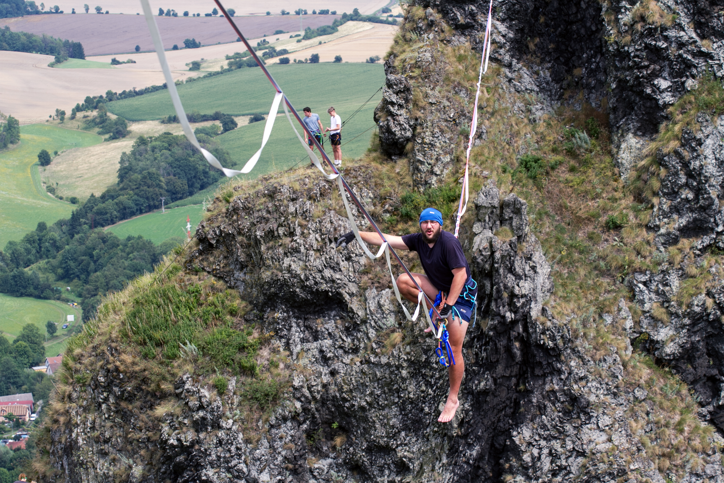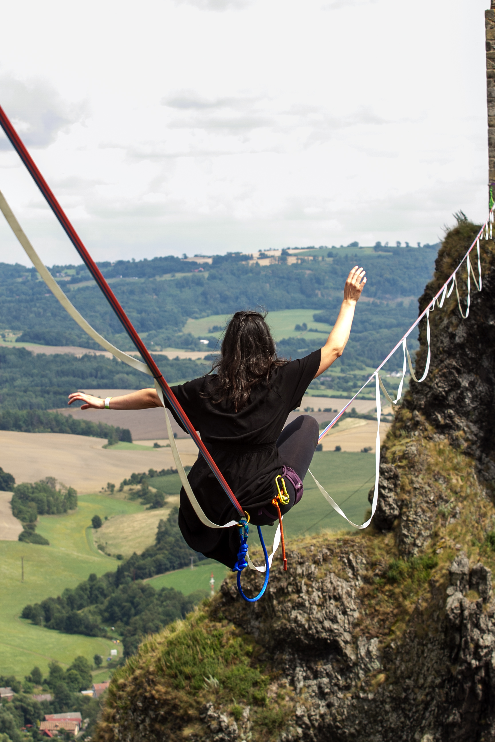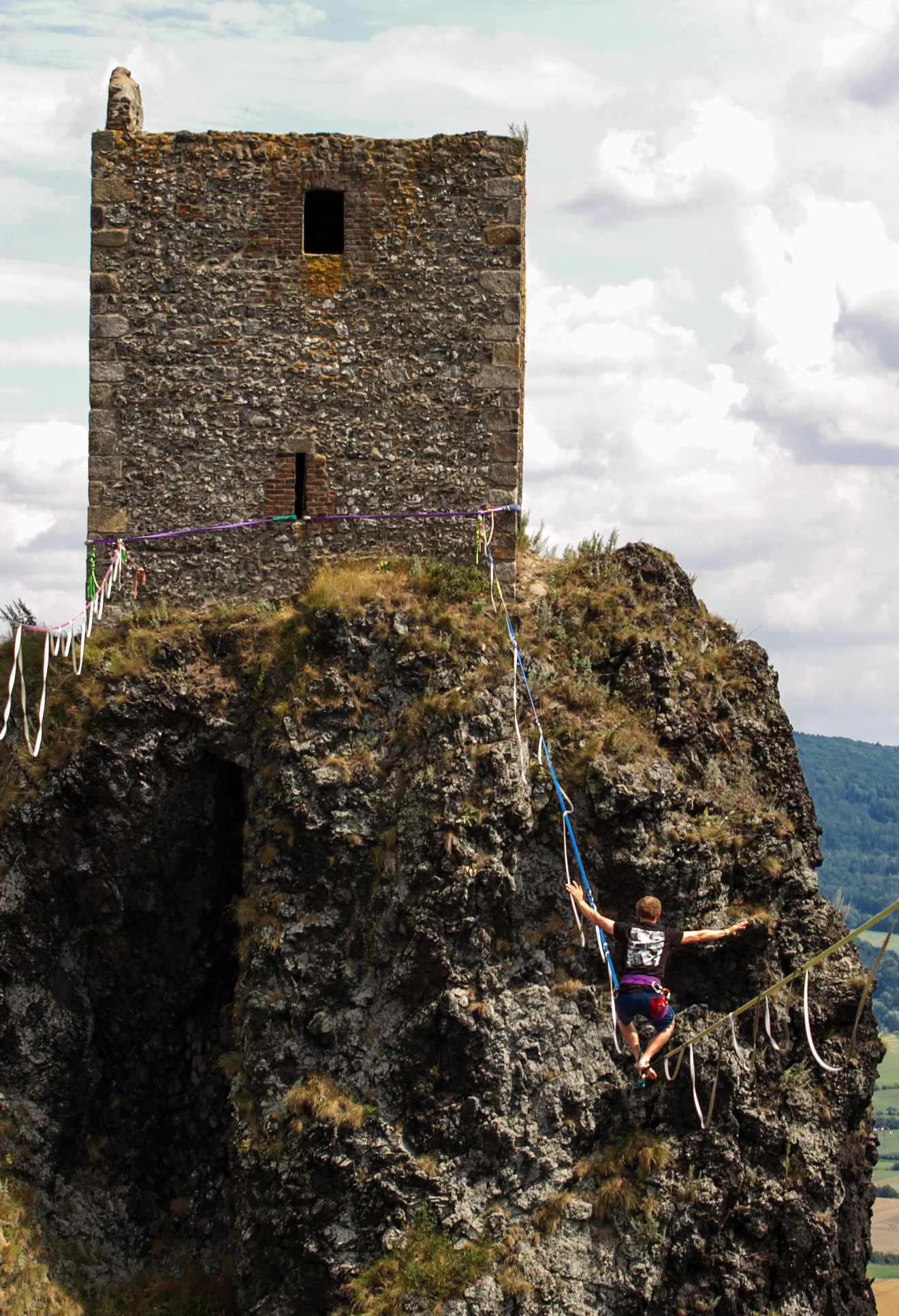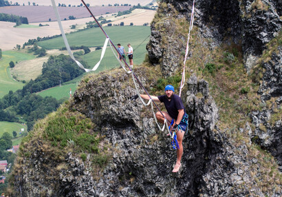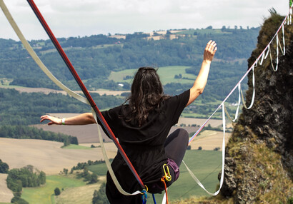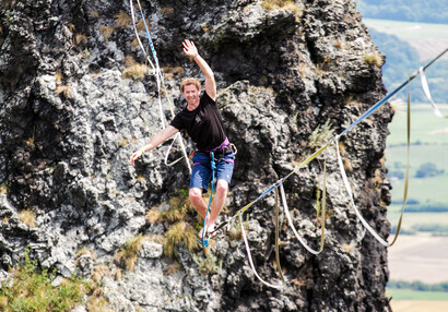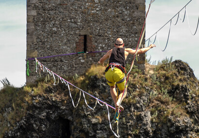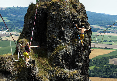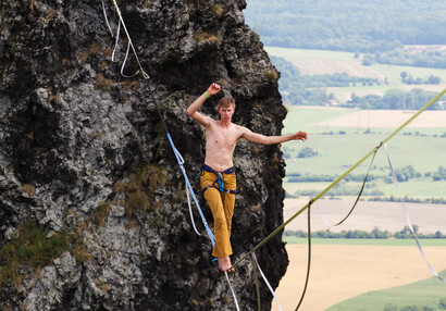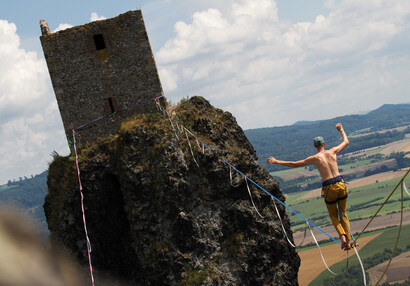 Slackliners at Trosky Castle 2025