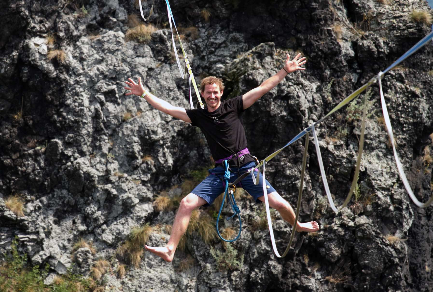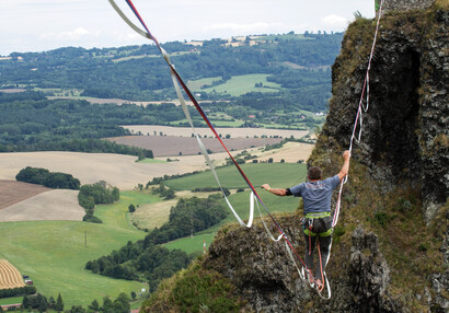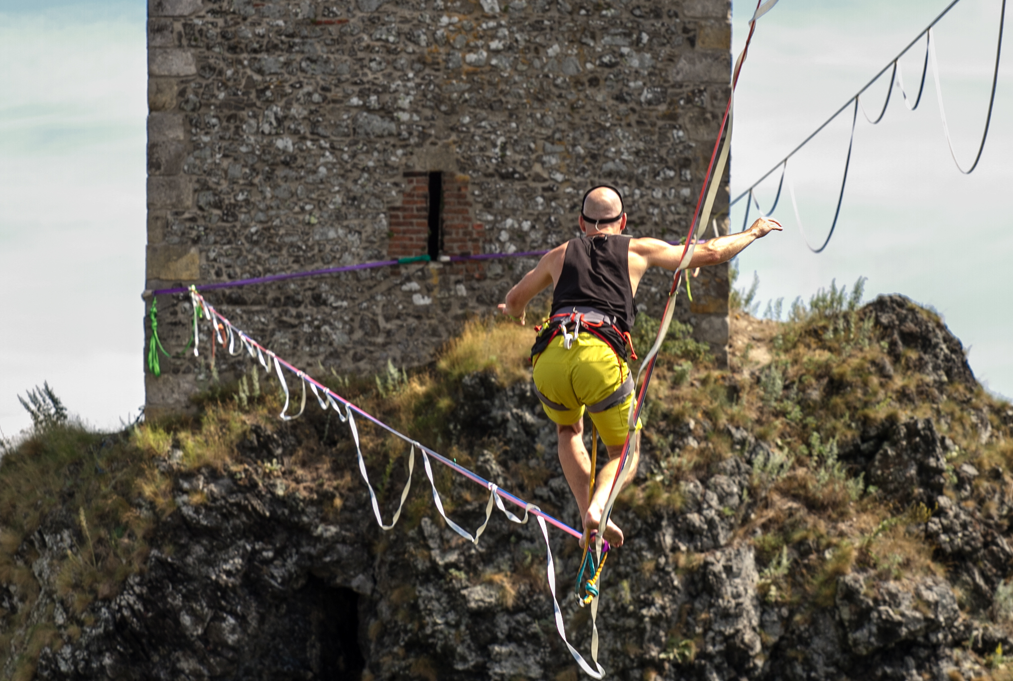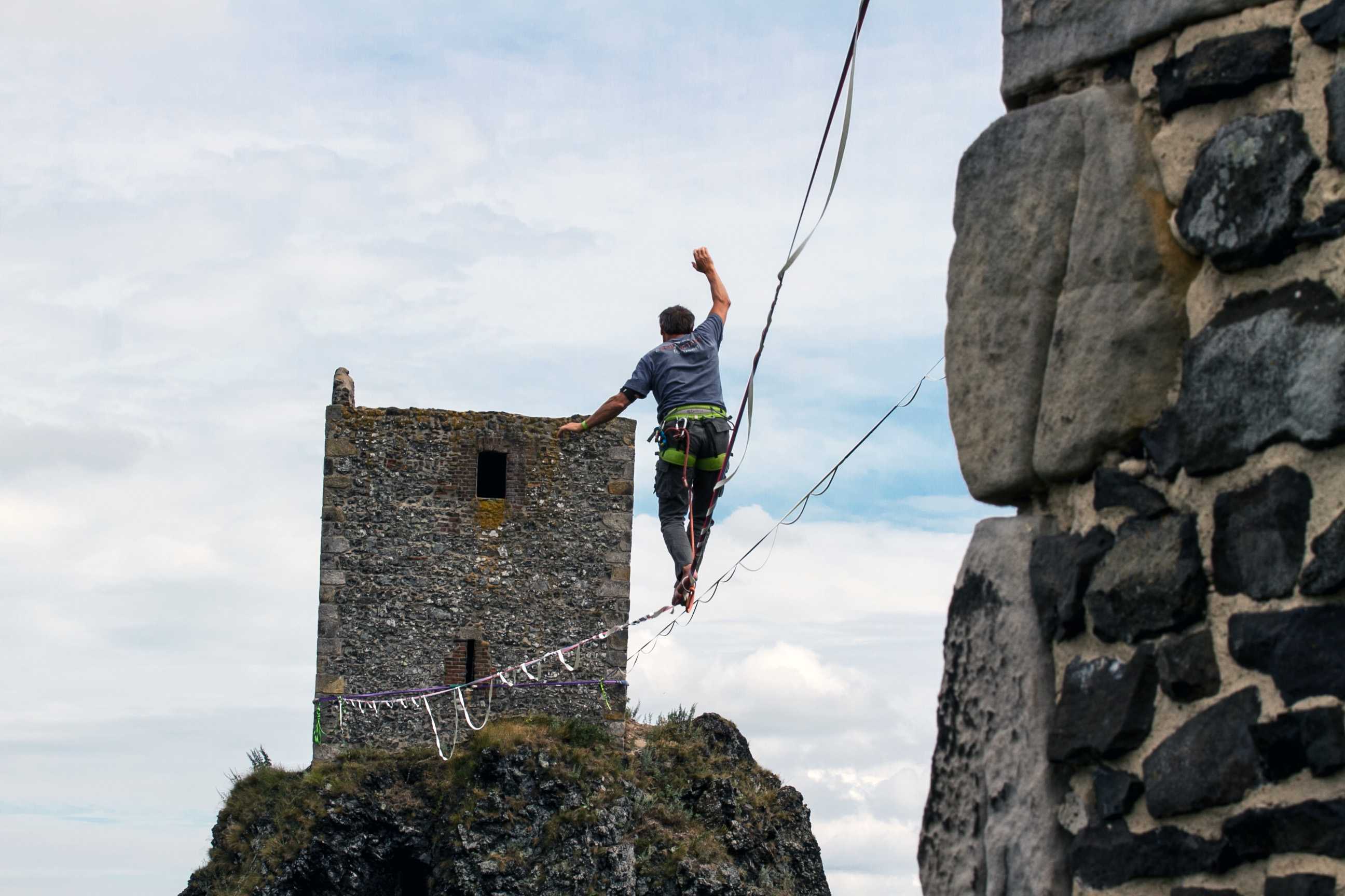 Slackliners at Trosky Castle 2025