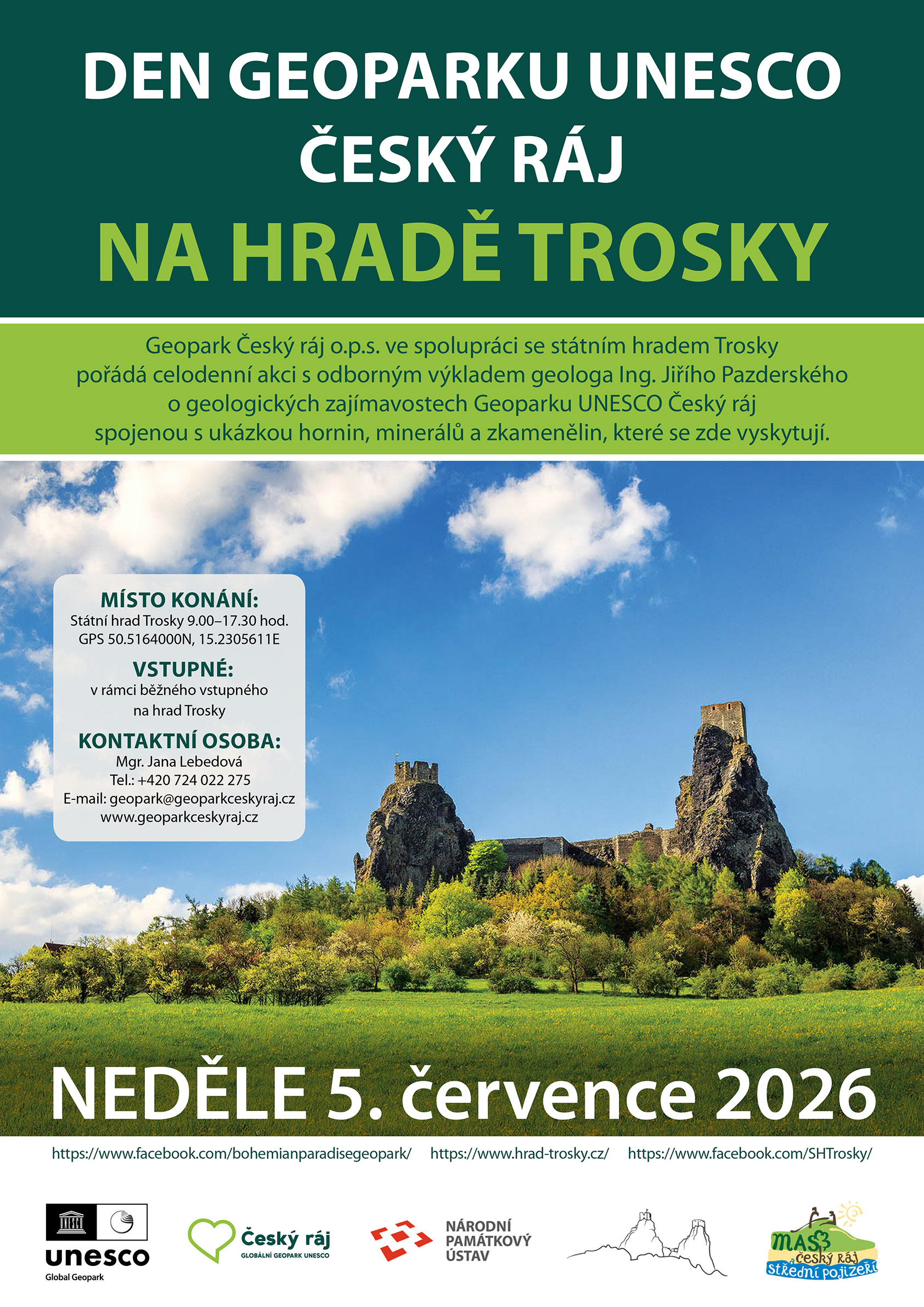 Dne 5. 7. 2026 pořádáme společně s organizací Geopark UNESCO Český ráj již tradiční Den Geoparku na Troskách.